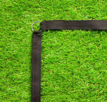 This 2 inch black volleyball boundary is perfect for sand or grass play and is adjustable to FIVB standards. It includes four 10" ABS corner stakes with bungee cord attachments, and durable plastic buckles that allow for proper adjustment to court boundary; is easy to use and designed for long-lasting use.